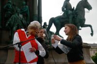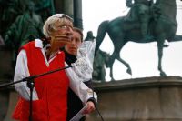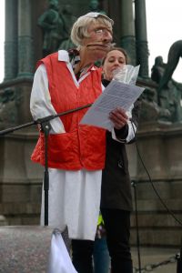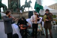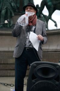 aten statt Worte. KünstlerInnen können von Ankündigungen alleine nicht leben. Viele KünstlerInnen sind in eine Notlage geraten und können sich ihre Miete und ihr Essen nicht mehr leisten. Deshalb forderten zahlreiche Besucher und Künstler bei der Demo vor Ort, ein Bedingungsloses Grundeinkommen, sowie die Soforthilfe aller Kunst und Kulturschaffenden in Österreich. Die soziale Lage der Kunstschaffenden war schon vor der Krise vielfach bestürzend und Corona hat dies noch verschärft. Als Redner auf der Bühne sprachen u.a Schauspieler und Kabarettist Josef Hader, Kabarettistin Guggi Hofbauer, Andrea Eckert (Schauspielerin / Intendantin). Mit dem Auftritt des Roma-Musikers Harri Stojka, endete die Kundgebung.