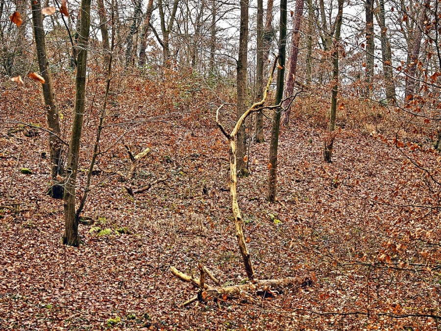 Besonders dann, wenn Nebelschwaden die Bäume umhüllen, zeigt der Wald sich in einer reizvollen Form, die nur im Winter oder Herbst so möglich ist. Da die meisten Bäume ihr Laub verloren haben, bieten die Baumskelette eine interessante Silhouette, die sehr schöne Fotos erlaubt. Strukturen , z.B. die Rinde, werden besonders deutlich, weil sie nicht mit Laub verborgen sind. Einzelne Blätter, die hartnäckig an den Ästen verharren, bieten sehr interessante Motive für Fotografien. Für Fotos bieten sich Strukturen wie Baumzusammen-stellungen oder auch Detailaufnahmen bis hin zu Makros an. Ein Blick in die Baumgipfel lohnt sich ebenfalls. Man muss damit leben, dass die Farbpalette eingegrenzt ist. Augen auf, die Natur bietet Farbklekse.