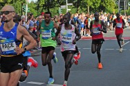 Der Edelhase, in diesem Fall Hendrik Pfeiffer höchstpersönlich, legte sich mächtig ins Zeug. Er spielte die Rolle des "Pacemakers" für die Topleute aus Ostafrika, die entschlossen waren, die fünf Jahre alte Höchstmarke (2:09:28 Stunden) von Justus Kiprotich anzugreifen. Schon vor dem Start schien er ein wenig nervös zu sein. "Das ist eine äußerst verantwortungsvolle Aufgabe", sagte der deutsche Marathonmeister, "wir haben die Zwischenzeiten im Voraus abgestimmt." Wie ein gut geöltes Uhrwerk führte er die Läufer in den ersten fünf Kilometern in 15:25 Minuten an, passierte die Zehn-Kilometer-Marke in 30:39 Minuten und die 15-Kilometer-Marke in 45:48 Minuten.